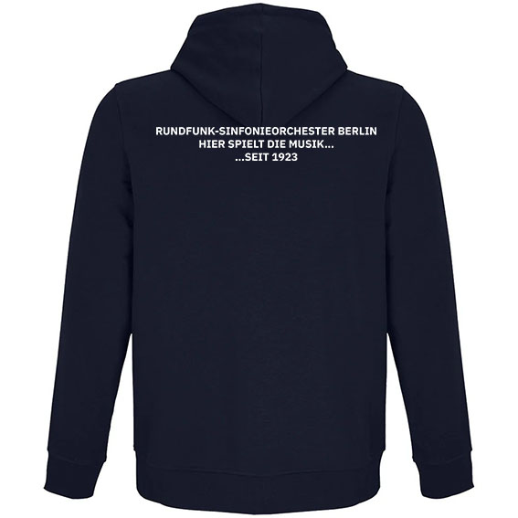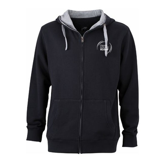 Hoodiejacke Unisex zweifarbig mit Brust- und Rückendruck in weiß.